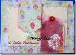 ОтветитьУдалитьКлараны (Тэги) несут чисто декоративную роль. А вот внутри открытки вложено поздравление, распечатанное на кальке и обработанное дыроколами края и угла. К сожалению, я не сфотографировала это.